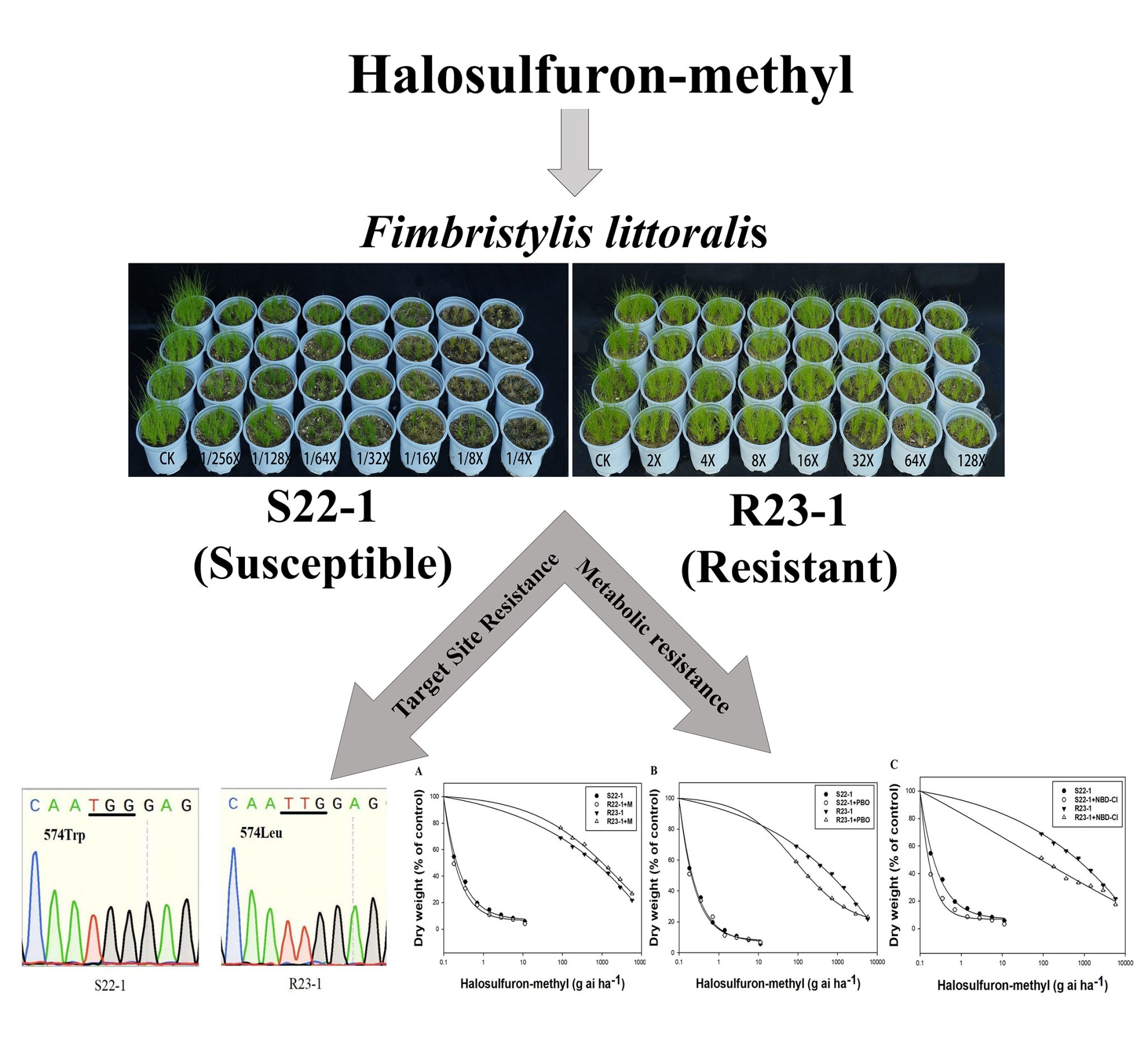 近日,我校农学院毕亚玲教授团队在国际知名期刊《Pesticide Biochemistry and Physiology》(中国科学院一区Top期刊,IF=4.2)发表了题为“The Trp-574-Leu mutations together with enhanced metabolism contribute to cross-resistance to ALS inhibiting herbicides inFimbristylis littoralis”的研究论文。该研究首次揭示了稻田恶性杂草水虱草(Fimbristylis littoralis Gaudich.)对乙酰乳酸合成酶(ALS)抑制剂类除草剂的抗性机制。硕士研究生史悦悦和青年教师吴志文博士为共同第一作者,毕亚玲教授为通讯作者,星空线上平台(集团)官方网站为唯一完成单位。