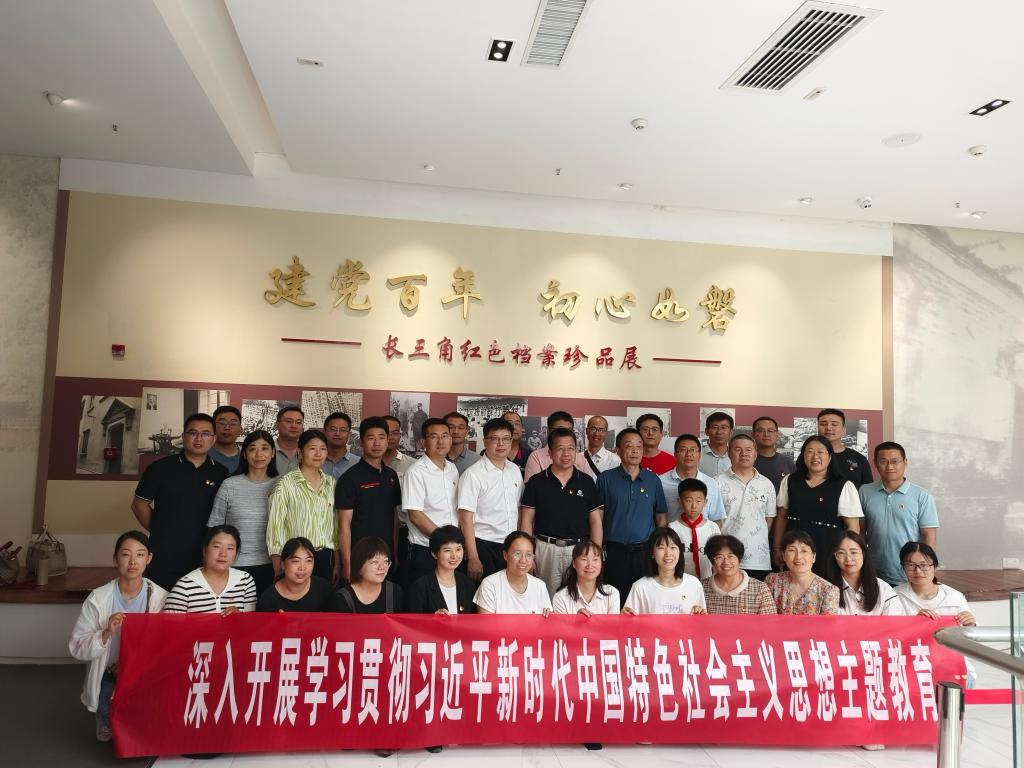 全体人员首先参观了长三角红色档案珍品展厅,长三角地区是一个有着光荣革命传统的红色土地,档案展通过“开天辟地宏图起” “革命洪流风云咤” “中流砥柱御外侮” “天翻地覆慨而慷”等四个篇章,展现了中国共产党带领长三角地区人民浴血奋战,夺取革命胜利的辉煌历史。在红色记忆展厅由何世潮领誓,全体党员面向鲜红的党旗,高举右拳,重温了入党誓词。铿锵有力的入党誓词,让每一位党员再一次许下了对党忠诚、永不叛党的坚定承诺和誓言,进一步增强了党性观念,受到了深刻的师德师风教育。