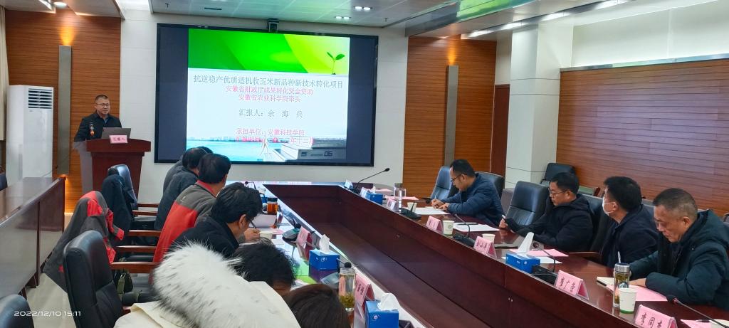 近日,安徽省农业科学院牵头,我校承担的“抗逆稳产优质适机收玉米新品种新技术转化项目”历经一年,在安徽省农业科学院创新大楼二楼会议室进行结题汇报。省财政厅农业农村处主任科员梁晓天,安徽省农业科学院科研处处长李成、计财处处长刘小平,星空线上平台(集团)官方网站农学院院长崔广荣、科研处副处长李同杰,部分项目组成员出席会议。项目验收专家组由安徽省农业科学院研究员陈洪俭、安徽省农技推广总站副站长康子领、安徽省种子管理站研究员刘玉恒、合肥丰乐种业股份有限公司正高级农艺师张二朋、众华会计师事务所商宜洲等成员组成。会议伊始李成致辞,专家组观看了课题组精心准备的视频,余海兵教授代表项目组从课题研究背景、研究目标、研究内容、研究方法、研究成果等方面做了全面细致的汇报。