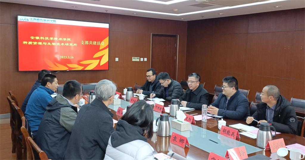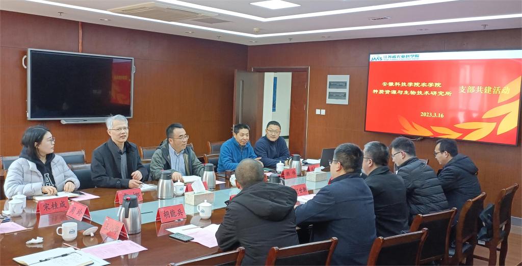 3月16日,农学院副院长李文阳教授、李杰勤教授、胡能兵教授、黄伟东博士、王小华博士等在学院党委书记何世潮的带领下,赴江苏农科院种质资源与生物技术研究所开展党建交流活动。活动由种质资源与生物技术研究所直属党支部书记李胜主持,该所所长赵涵及相关部门负责人颜伟、袁娜、张体付、周玲、魏伶俐等参加了交流。