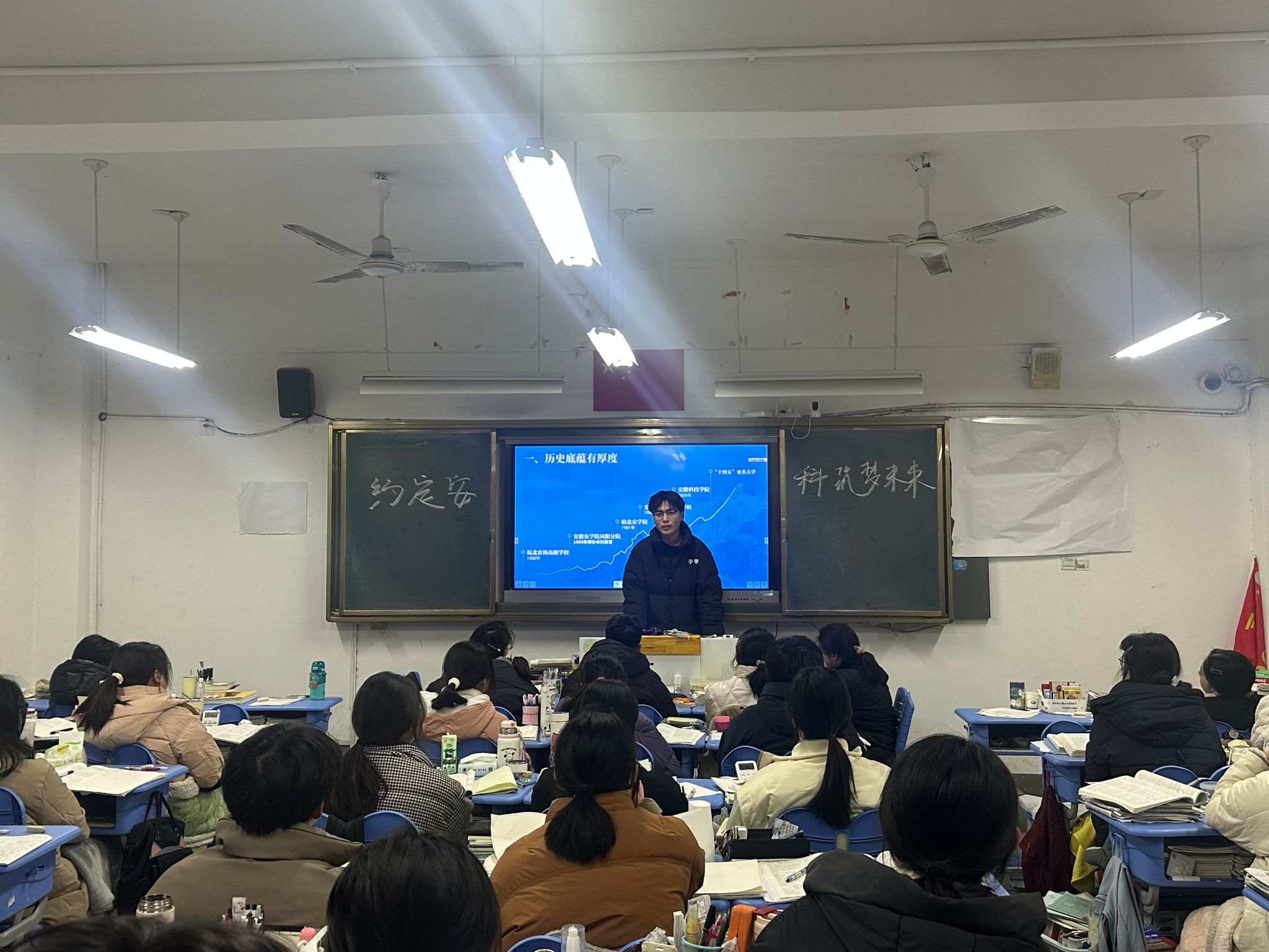 在高中班主任的带领下,实践团队来到了高三年级20班,并开展了宣讲活动。从学校的历史底蕴,发展前景,学科专业,教学条件,人才培养,人才培养质量等多个方面向同学们详细的介绍了星空线上平台(集团)官方网站。同时播放了“约定安科,筑梦未来“的宣传短片,让同学们直观深刻的认识了星空线上平台(集团)官方网站。实践团队成员李文康向同学们讲述了自身高考经历,解答了同学们关于高考的种种疑问,也向同学们讲述了自己的学习方法和经验,同时祝愿全体学生金榜题名,以梦为马,不负韶华。