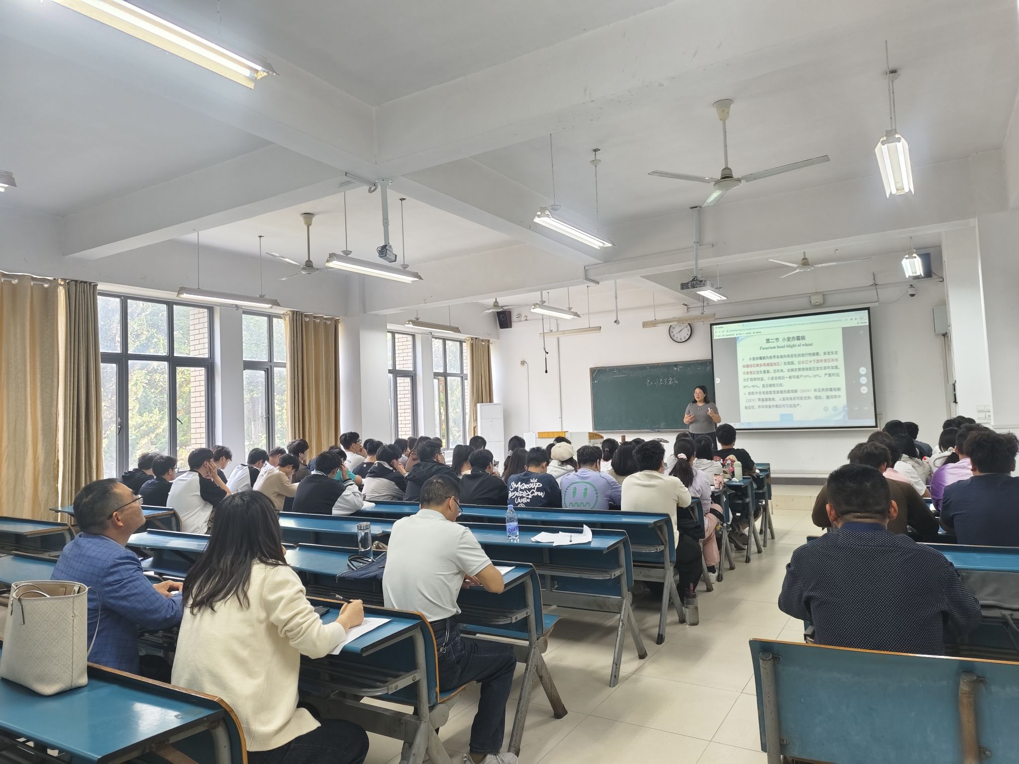 4月29日上午,农学院植物保护系“精彩一课”系列活动之“名师讲堂”:毕亚玲教授讲小麦赤霉病在新知楼A101开讲,活动由农学院植物保护系承办,农学院党委副书记张轶辉深入课堂听课,植物保护系全体教师参与现场观摩学习。