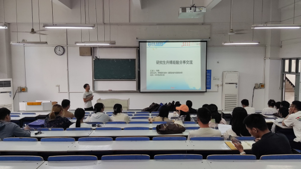 5月31日下午,农学院研究生党支部在求A106举办升博经验交流会,支部党员靳鹏、路露受邀分享升博经验,会议由辅导员吴荡主持。