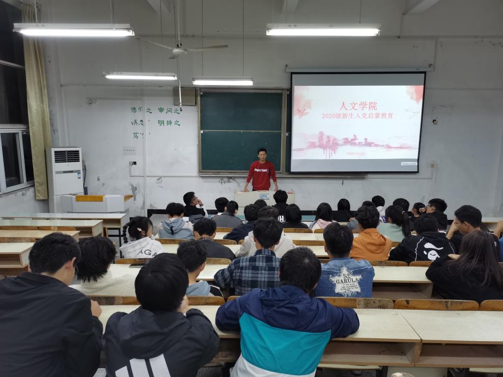 为帮助2020级新生更好地了解党章党史、入党要求和入党程序,明确入党动机,激发新生爱党爱国爱社会主义热情,人文学院于11月14日晚在求知楼A101举办了新生入党启蒙教育暨四史教育讲座。会议由学院辅导员焦雪松主持,20级新生到场学习。