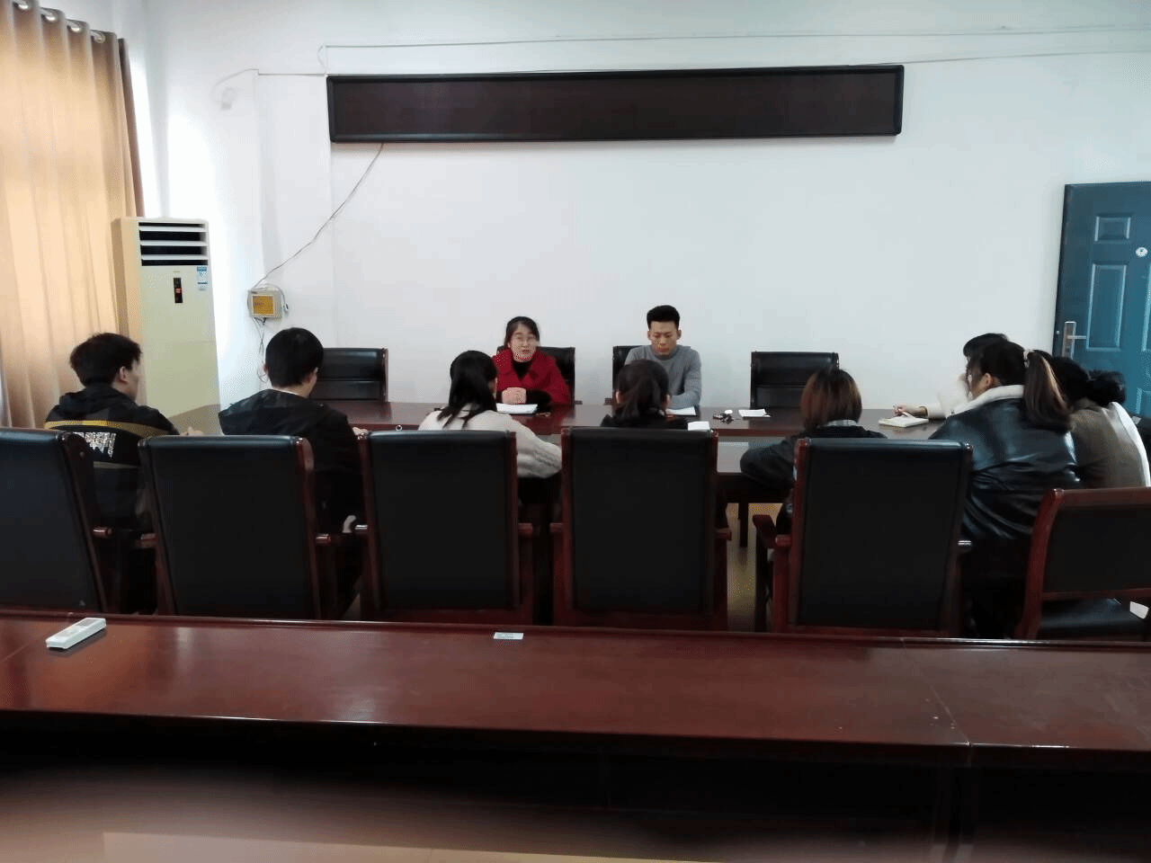 3月24日中午,人文学院在会议室召开新学期学风警示教育会。人文学院党总支副书记李沙娜、辅导员焦雪松和两门及以上不及格的同学参加了会议。
