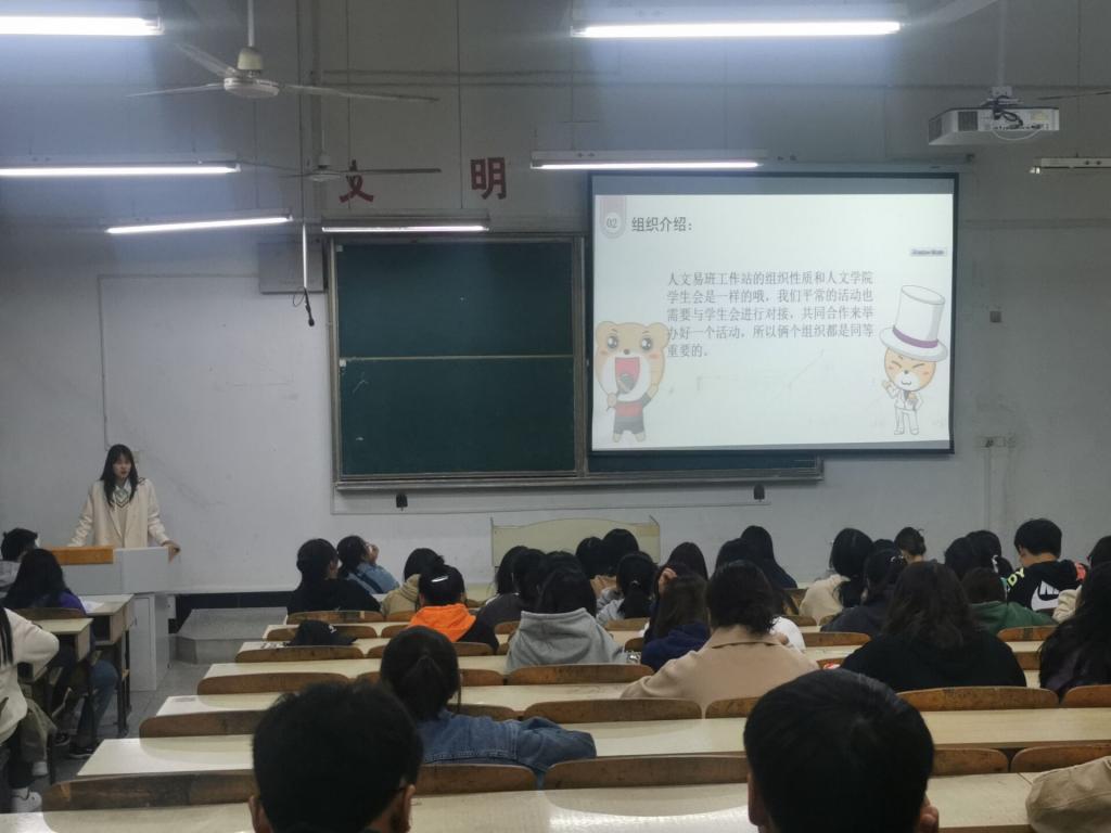 为进一步增强2021级新生对易班App的了解,普及易班App的使用,拓展学生思想政治教育平台,发挥易班App在思想引领中的作用。10月17日晚,人文学院易班工作站在求A105、107教室召开易班宣讲会。会议由学院易班部门负责人吴丽君、荣煜主讲,易班各部门干事,21级全体新生,20、19级各班班长和宣传委员参加本次会议。