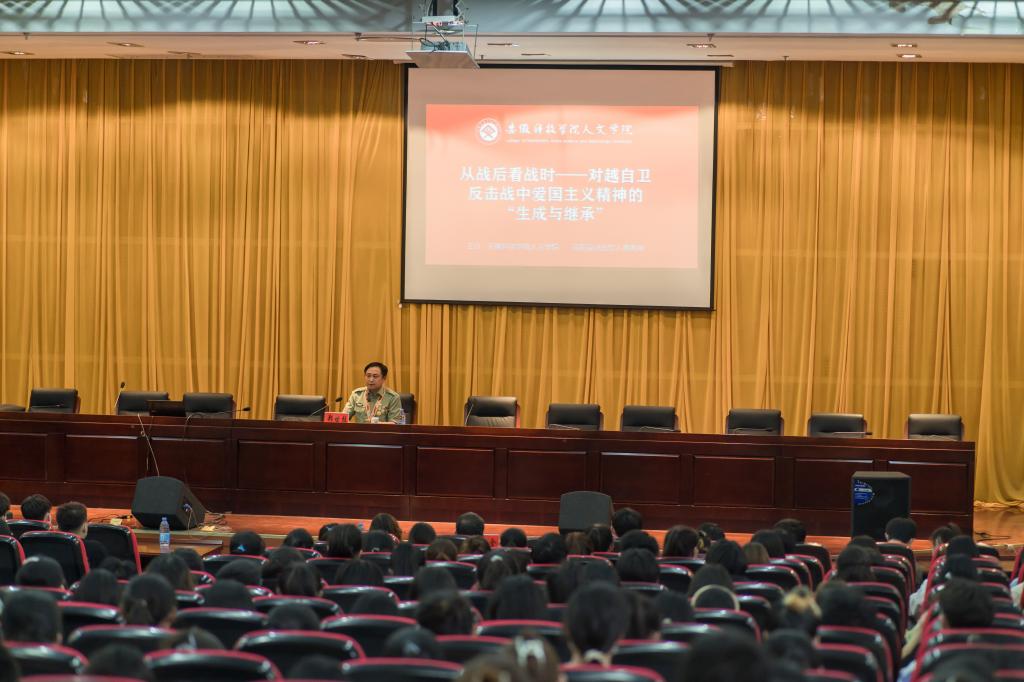 郑世柱同志围绕“从战后看战时——对越自卫反击战中爱国主义精神的‘生成与继承’”主题展开宣讲,他结合对越自卫反击战的重大意义,以一个普通战士的视角,透过自己和战友们的真实经历,将战争中血与火的故事娓娓道来,真切还原了那段战火纷飞的浴血岁月,讲述了八十年代革命军人在战场上英勇顽强,勇于克服困难,坚决服从命令,用尽一切努力完成任务的责任担当和家国情怀。讲述了共产党人抛头颅洒热血,忠于同志、忠于党、忠于革命的理想信念。战士们抛头颅、洒热血的大无畏精神深深感染了在场的每位同学,使他们沉浸在每一枚勋章所承载的历史记忆中。