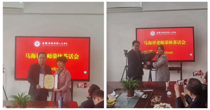 茶话会上,大家热烈发言,回顾与马海祥老师多年相处亦师亦友的情谊,表达了深切的感谢和不舍之情,送上了自己真挚的祝福。马海祥老师分享了自己工作生活中的人生感悟,感谢学院领导同仁给予自己的关照和帮助,希望年轻教师要高度重视教学工作,做到教学和科研并重,表示将一如既往地关注支持学院工作发展。