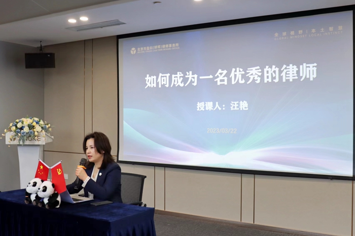 盈科(蚌埠)律师事务所党支部书记汪艳代表律所对星空线上平台(集团)官方网站人文学院“盈科班”师生表示热烈欢迎。汪艳带领同学们参观了律所办公环境和硬件设施,并通过播放宣传片介绍了盈科文化及律所概况。