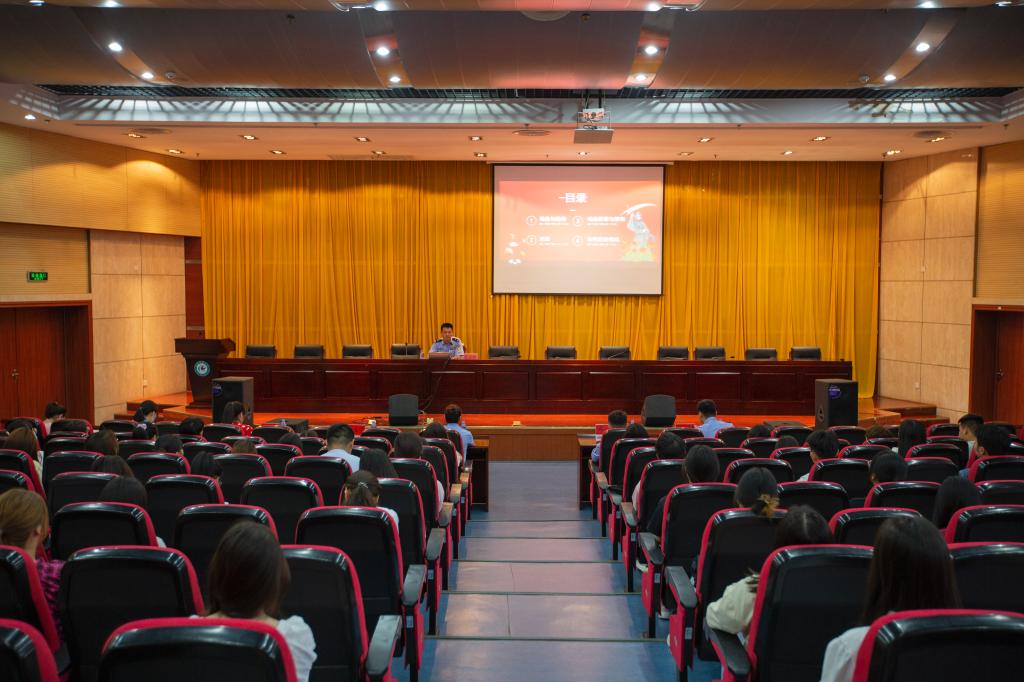 为深入开展禁毒宣传教育,普及毒品防范知识,筑牢禁毒思想防线,6月14日下午,由学生处、保卫处与人文学院共同开展的“健康人生,绿色无毒”大学生禁毒知识专题讲座于会议中心二楼报告厅开讲。蚌埠监狱第七监区支部书记、监区长马立宝,蚌埠监狱第七监区支部委员、副监区长窦豪,蚌埠监狱第七监区四级警长张鑫,蚌埠戒毒所教育科副科长刘莹,人文学院党委副书记李沙娜,学校2021、2022级部分同学参加讲座,讲座由蚌埠戒毒所五大队党支部副书记朱正光主讲。