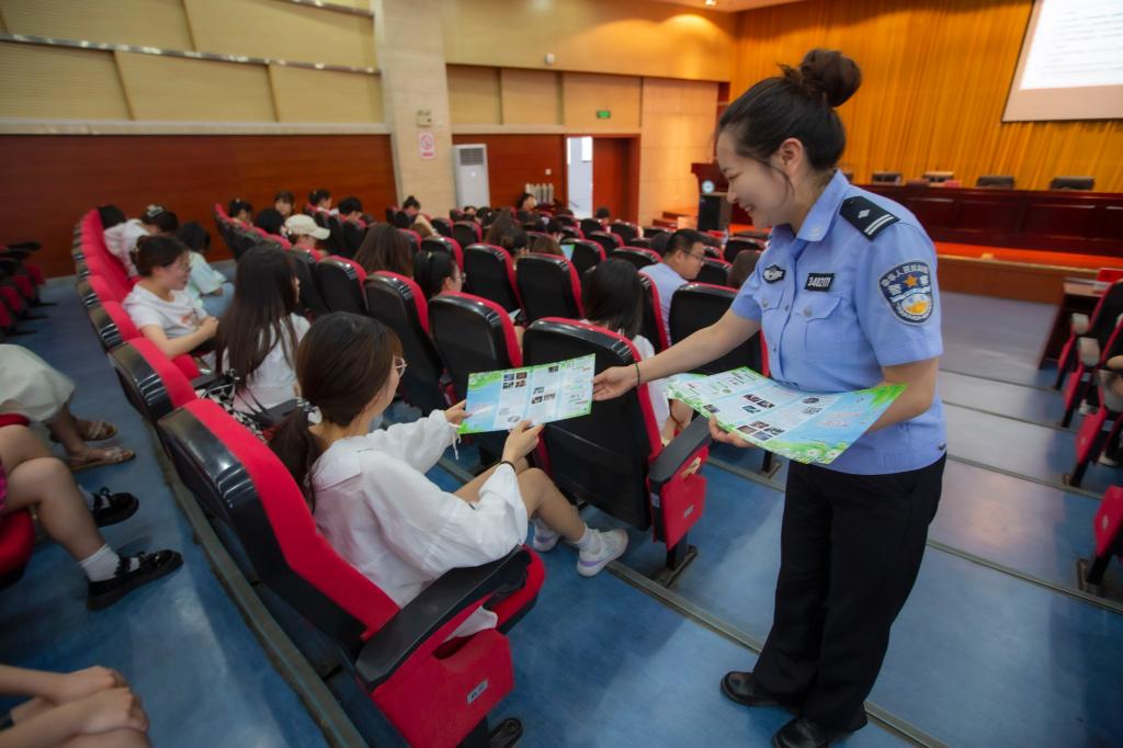 讲座现场,朱正光向参会同学展示仿真毒品模型,提供近距离辨认毒品的机会,并发放禁毒宣传教育手册,通过日常生活中吸毒、贩毒的典型案例,加深同学们对毒品的危害性和禁毒的必要性的认识。