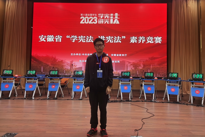 为深入学习贯彻习近平法治思想,推动青少年宪法学习宣传教育走深走实,由安徽省教育厅主办的第八届安徽省学生“学宪法 讲宪法”比赛于10月11日-13日在巢湖学院举行。本次活动分为演讲比赛和素养竞赛两个部分,经过初赛,我校法学专业学生傅志国、史梦洁分别进入素养竞赛和演讲比赛复赛,并最终获得了“学宪法 讲宪法”素养竞赛高校组二等奖和“学宪法 讲宪法”演讲比赛高校组三等奖的好成绩。