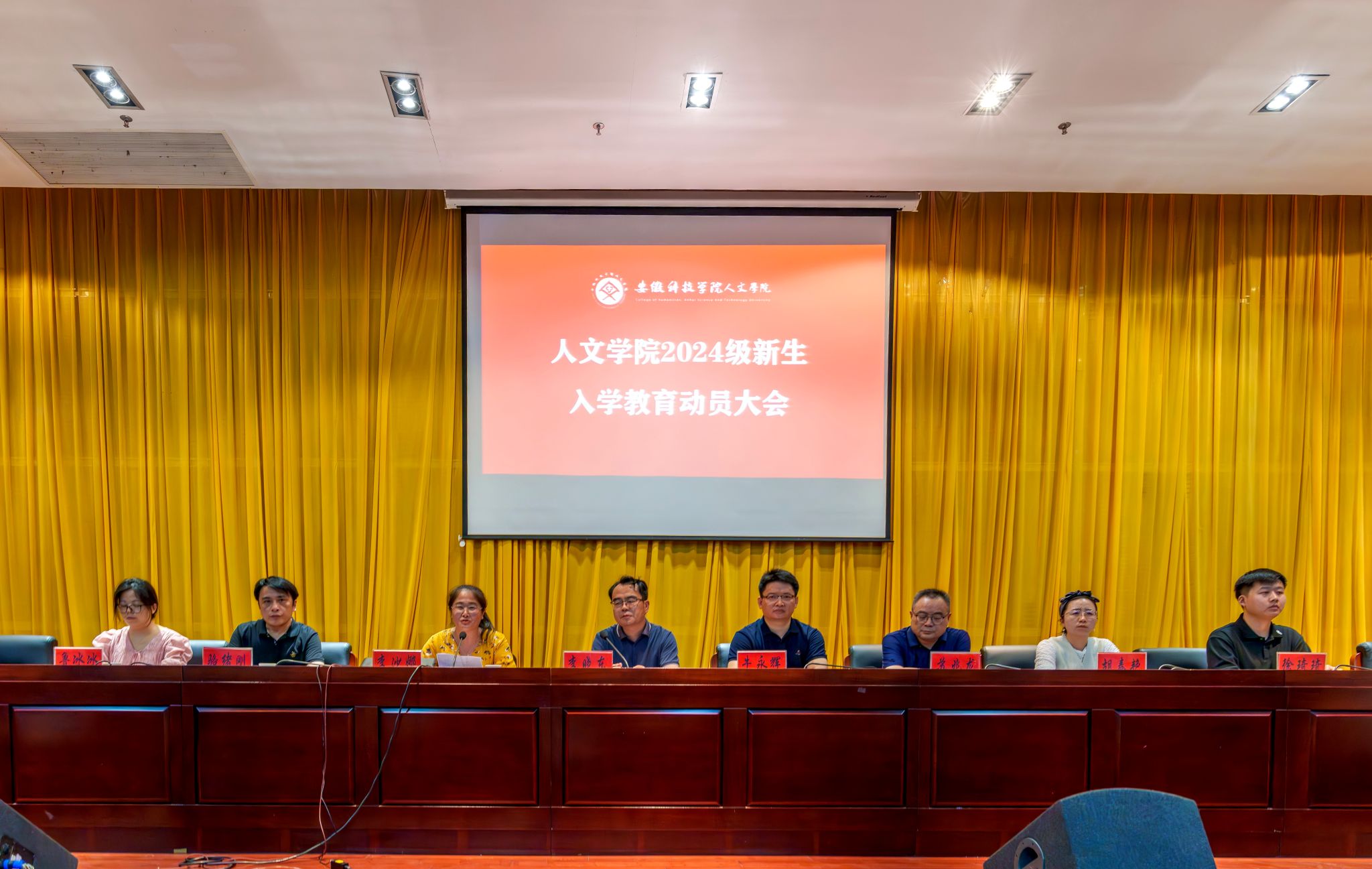 云天收夏色,木叶动秋声。9月11日晚上,人文学院在新图书馆二楼报告厅召开2024级新生入学教育动员大会。人文学院党政领导、系主任、教师代表、新生辅导员以及2024级180名新生参加,会议由人文学院党委副书记、院长李晓东主持。