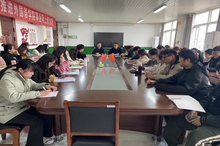 为持续加强学风建设,进一步提升人才培养质量,3月13日下午,外国语学院在学院会议室召开春季学期“我为评估作贡献”专题学风建设座谈会。学院党政领导和有关教师出席会议,各班部分学生干部和学生会部分成员参加会议,座谈会由学院党委副书记张海亮主持。