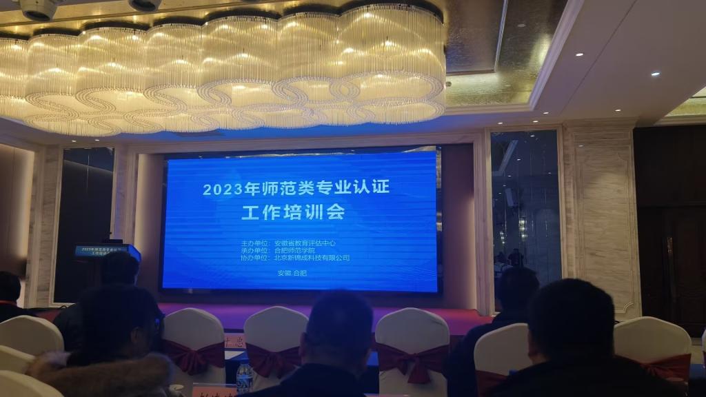 由安徽省教育评估中心主办、合肥师范学院承办的安徽省2023年师范类专业认证培训会于12月21-22日在合肥召开。来自全国12个省份50所开设有师范专业高校的校领导、教务处和教学质量管理部门相关负责人、师范专业所在院系负责人和专业负责人近260人参加会议。我校食品工程学院和人文学院分管专业认证工作教学副院长、专业负责人及教务处相关人员一行5人参加培训。