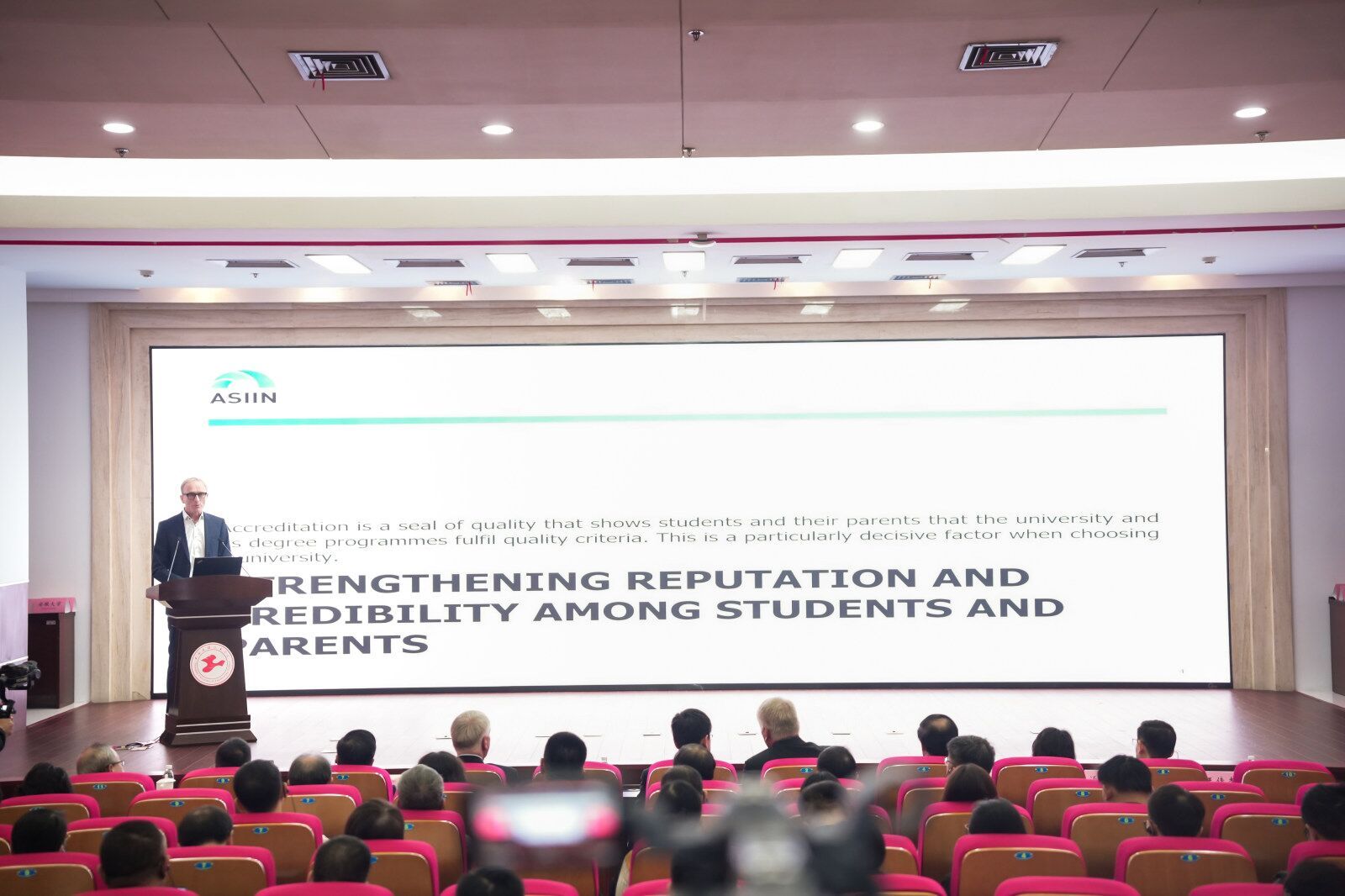 德国ASIIN认证协会主席Prof. Dr. Klaus Kreulich以“认证和声誉——高等教育机构国际认证的内外效益”为主题作大会致辞,ASIIN认证协会秘书长Prof. Dr. Iring Wasser、ASIIN认证协会副主席Prof. Dr. Christian Schumann、上海工程技术大学副校长夏春明分别作《中国高校如何从ASIIN的能力建设和提升项目中获益》《实践研究——应用科技大学的模式介绍》《协同共生视域下应用型高校国际化特色发展的实践与思考——以上海工程技术大学中德产学研用创新联合体建设为例》主题报告。