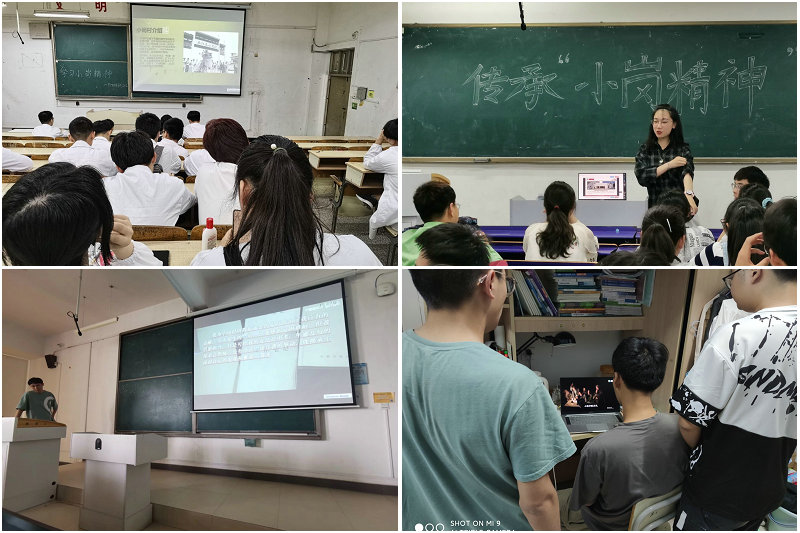 各班级采取了各种各样的活动形式对小岗精神进行宣传,内容丰富形式新颖。一些团支部采取PPT的形式宣传小岗精神,让同学们通过小岗精神更加深入了解党的精神内涵,一些班级通过观看视频材料的形式对小岗精神的学习,还有的班级开展党史相关主题班会学习改革开放时期的精神。