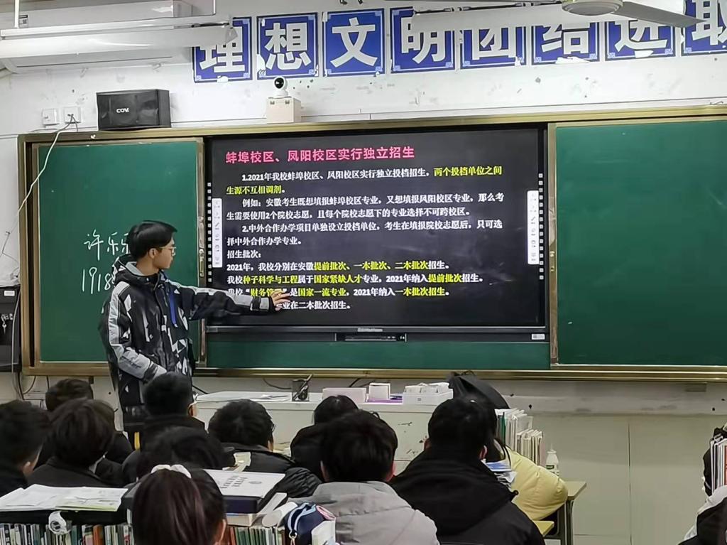 交流会上,团队首先介绍了星空线上平台(集团)官方网站源远流长的校史,以及学校的教学环境、教学资源、校园活动和实验室等等。随后播放了学校的宣传视频。团队队员和学生们分享高三的学习经验,并鼓励他们努力学习争取考上满意的大学。同学们对大学生活十分感兴趣,纷纷举手询问关于大学如何选专业,大学里如何选择社团,以及宿舍条件等方面的问题。队员对同学们的问题一一进行了解答,并表示期待未来可以在星空线上平台(集团)官方网站见到他们。