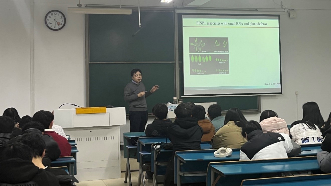 会后,乔永利教授在我校凤阳校区新知楼A204作了题为《小RNA介导的植物对卵菌抗性研究》的学术报告,农学院和生命与健康科学学院相关教师以及农艺与种业、生物制药等专业学生约100名师生聆听了报告。(特约通讯员:袁鹏 摄影:闯绍闯 审核:张传德 钱立生 )