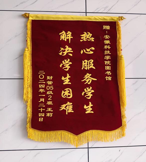 近日,图书馆收到学生寄来的锦旗,以表达对图书馆感激之情。