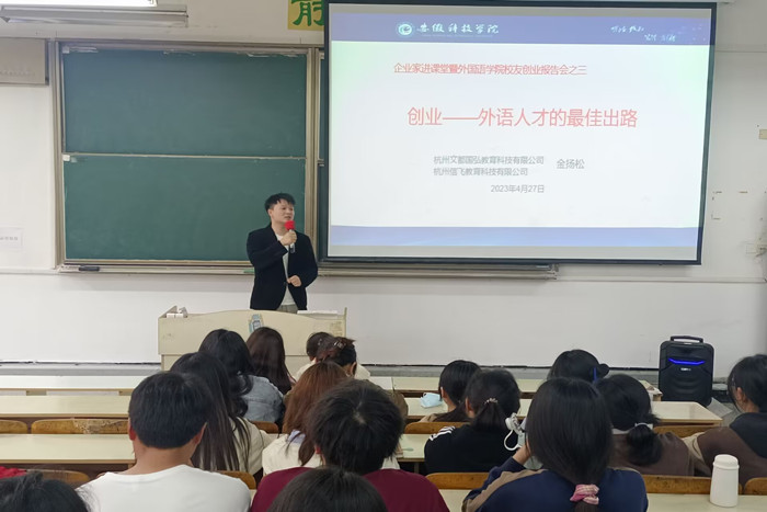 为加强大学生职业生涯指导,提升大学生就业创业能力,外国语学院于4月下旬邀请优秀创业校友来校为学生做创业事迹报告会,分享求职和创业经历,为大学生成长成才提供科学建议。