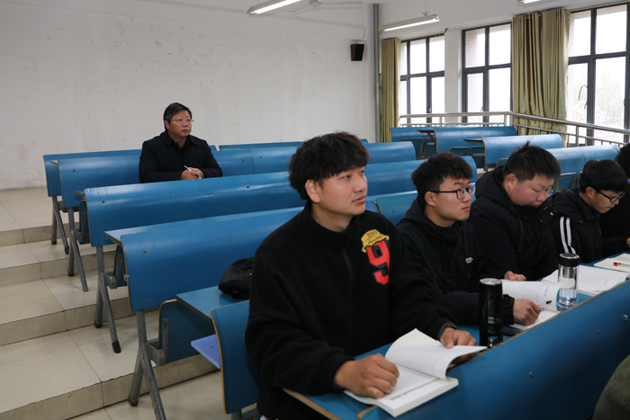 蒋德勤、李震与凤阳校区同学们一起走进课堂,分别听取了《大学生心理健康教育》和《汽车理论》两门课。听课过程中,蒋德勤、李震详细记录了课堂授课内容,认真填写了《听课情况表》。利用课间休息时间,蒋德勤、李震与任课老师亲切交谈,并对老师认真的教学态度以及丰富的教学内容予以赞赏。此外,还就教学改革、课程思政等方面的工作提出了具体的指导意见。韦文联、黄远友、王强、黄友锐、李升和等校领导也均按照既定的听课方案,分别深入龙湖校区、凤阳校区课堂一线,听取了《管理统计》、《园艺植物保护通论》、《设施栽培技术》、《数字电子技术》等课程。