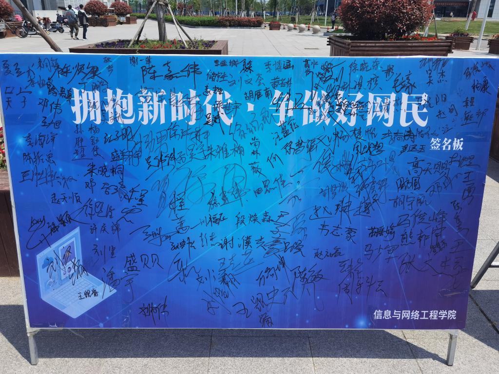 活动现场,秩序井然,同学们在展板上郑重的签下自己的名字,表明履行承诺的决心。同学们纷纷表示,要相互监督从自身做起合理利用网络,树立网络安全意识,谨防网络诈骗,做国家信息安全的守护者。