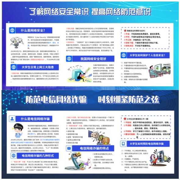 本次网络安全教育宣传展活动以“拥抱新时代·争做好网民”为主题,采用展板学习和学生签字的活动形式,组织全院同学进行网络安全教育知识学习。活动中,知识解说员带领同学依次观看了展出内容,并围绕“了解网络安全常识、提高网络防意识”的主要内容进行了详细的讲解。“防范电信网络诈骗、时刻绷紧防范之弦”展板结合《星空线上平台(集团)官方网站关于印发防范电信网络诈骗宣传铁布衫行动计划实施方案的通知》,对电信诈骗、校园贷和网络安全的特征、危害以及预防方法进行了说明,鼓励各位同学提高网络安全意识,正确利用网络进行学习。