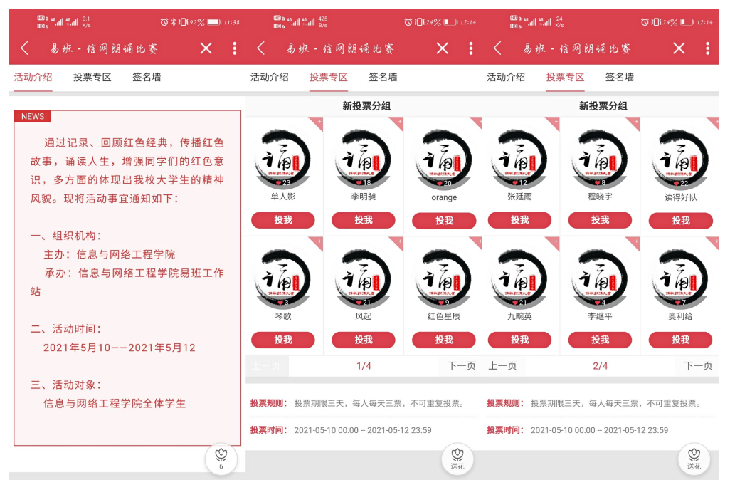 朗诵比赛以“学百年党史诵读红色经典”为主题,采取了线上线下相结合的方式,极大地激发了学生的参与热情。参赛选手们通过喜马拉雅听等平台,录制了《党旗飘飘》、《一定要锻炼意志》、《一息尚存,终将努力奋斗》、《争国权益救危亡,是青年男儿之有责》、《有一首歌》等等红色经典诗词,一首首慷慨激昂、铿锵有力的经典诗词,再现红色年代的时代强音。活动还通过生成视频、音频链接的形式,在易班平台搭建轻应用进行师生投票遴选评比。经过为期近一个月的激烈比拼,计科204班读者团队最终在本次比赛中摘得桂冠。