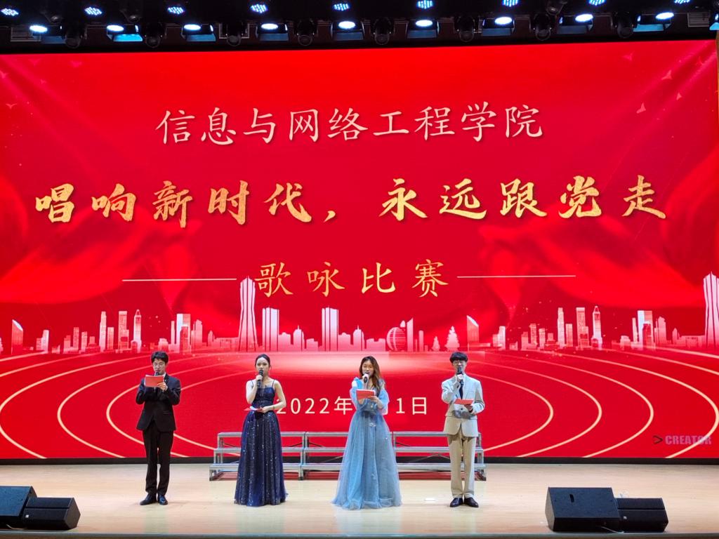 为喜迎党的二十大胜利召开,激发广大学生爱国的热情,5月1日-7日,信息与网络工程学院采取线上线下相结合的方式,举办了“唱响新时代,永远跟党走”班级歌咏比赛。学院2021级全体学生参加比赛,比赛由韩梓豪、周俊晖、曹淑婧、王艺陶主持。