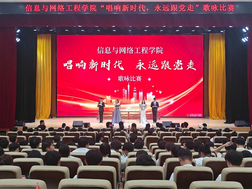 为深入学习贯彻党的二十大精神,激发广大学生的爱国热情,5月31日晚,信息与网络工程学院在东辅楼报告厅举办了“唱响新时代 永远跟党走”歌咏比赛。学院党委书记王振其、党委副书记韦乃学、全体辅导员及学院学生各类学生组织观看比赛,学院2022级各班级学生参加比赛,龙湖校区其他学院学生会负责人担任比赛评委,比赛由王艺陶、王也、任淑慧、辛远洋主持。