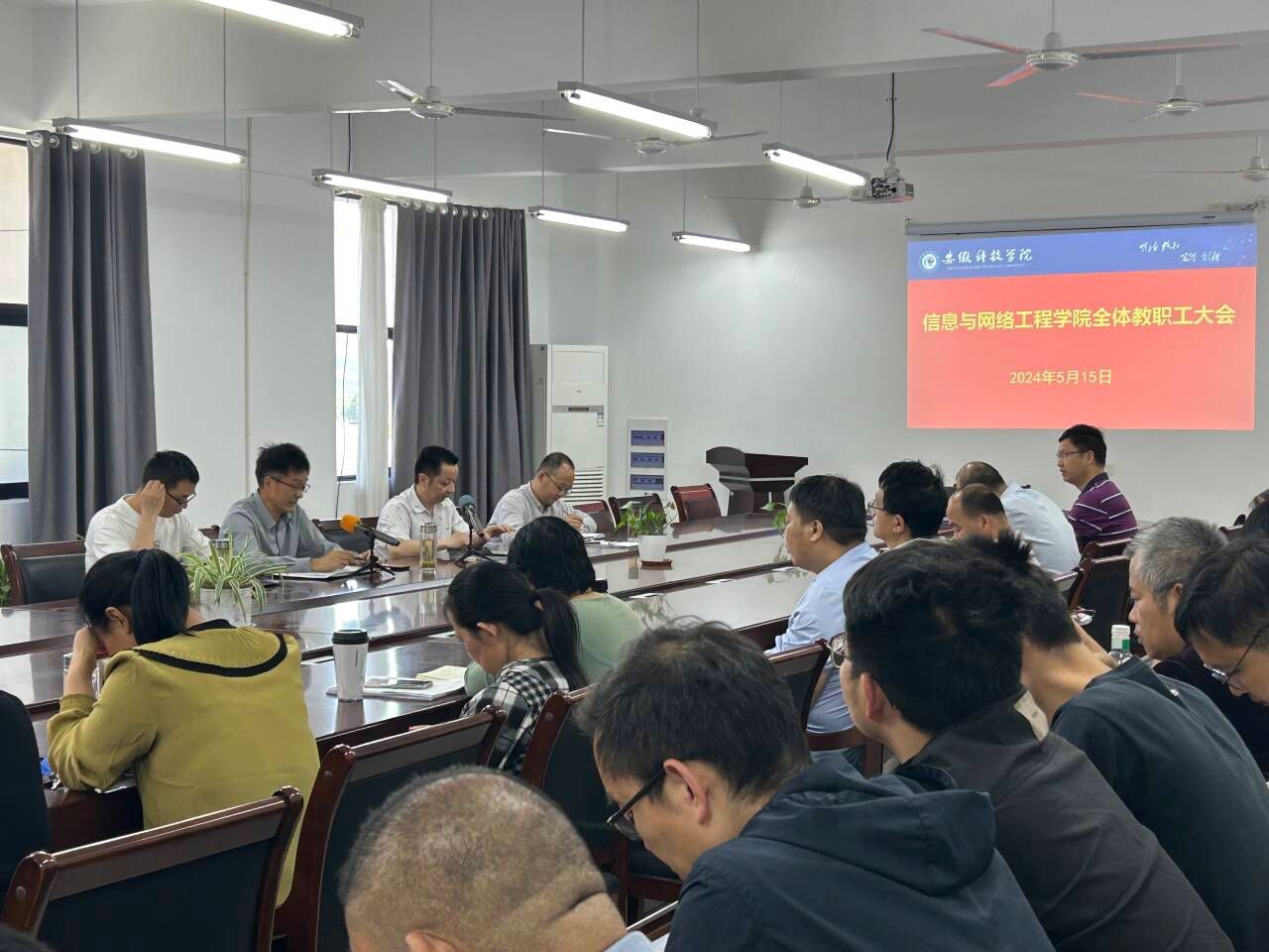 5月15日下午,信息与网络工程学院在尚行楼B418召开全体教职工大会。学院党政领导和全体教职工参加会议,会议由学院党委书记王振其主持。