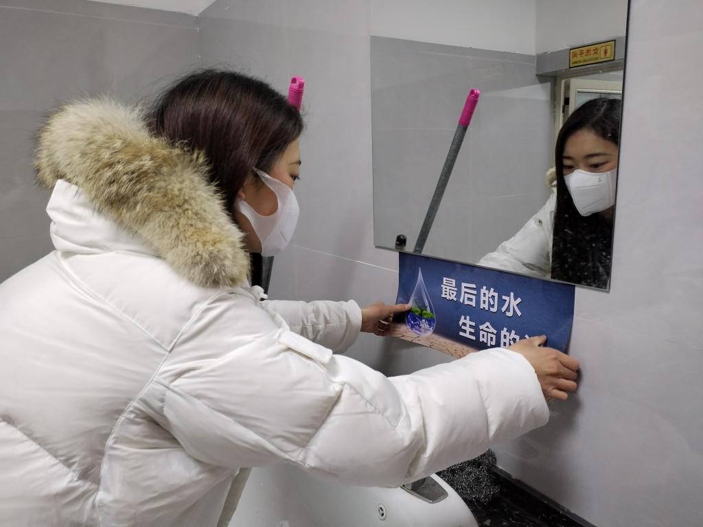 宣讲结束,志愿者们在校园的办公楼、教学楼等各个角落张贴环保宣传标语,在全校范围内营造浓厚的绿色环保氛围。