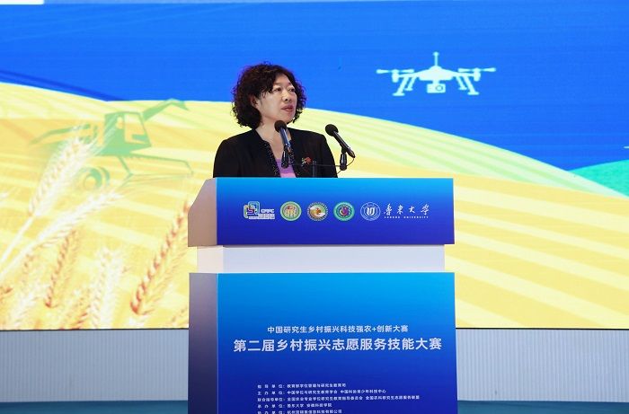 开幕式上赵瑜致辞,她强调,今年是习近平总书记对研究生教育工作作出重要指示五周年,也是《教育强国建设规划纲要(2024-2035 年)》贯彻落实开局之年,纲要明确提出“完善拔尖创新人才发现和培养机制”。研究生教育作为高水平拔尖创新人才培养的主渠道,在支撑高水平科技自立自强、高水平人才自主培养,建设世界重要人才中心和创新高地中发挥关键作用。他指出,志愿服务是中国式现代化建设与乡村振兴的重要力量,去年印发的《关于健全新时代志愿服务体系的意见》充分体现了党中央对志愿服务事业的高度重视。乡村振兴志愿服务技能大赛作为科技强农+创新大赛的重要组成,引导研究生关注“三农”、涵养家国情怀,用专业所长助力 “新农村、新农业、新农民、新生态” 建设。本届大赛规模实现翻番,同比增长超 160%,充分彰显了研究生将农业农村需求与科研理论结合、投身乡村振兴的热情与成果。