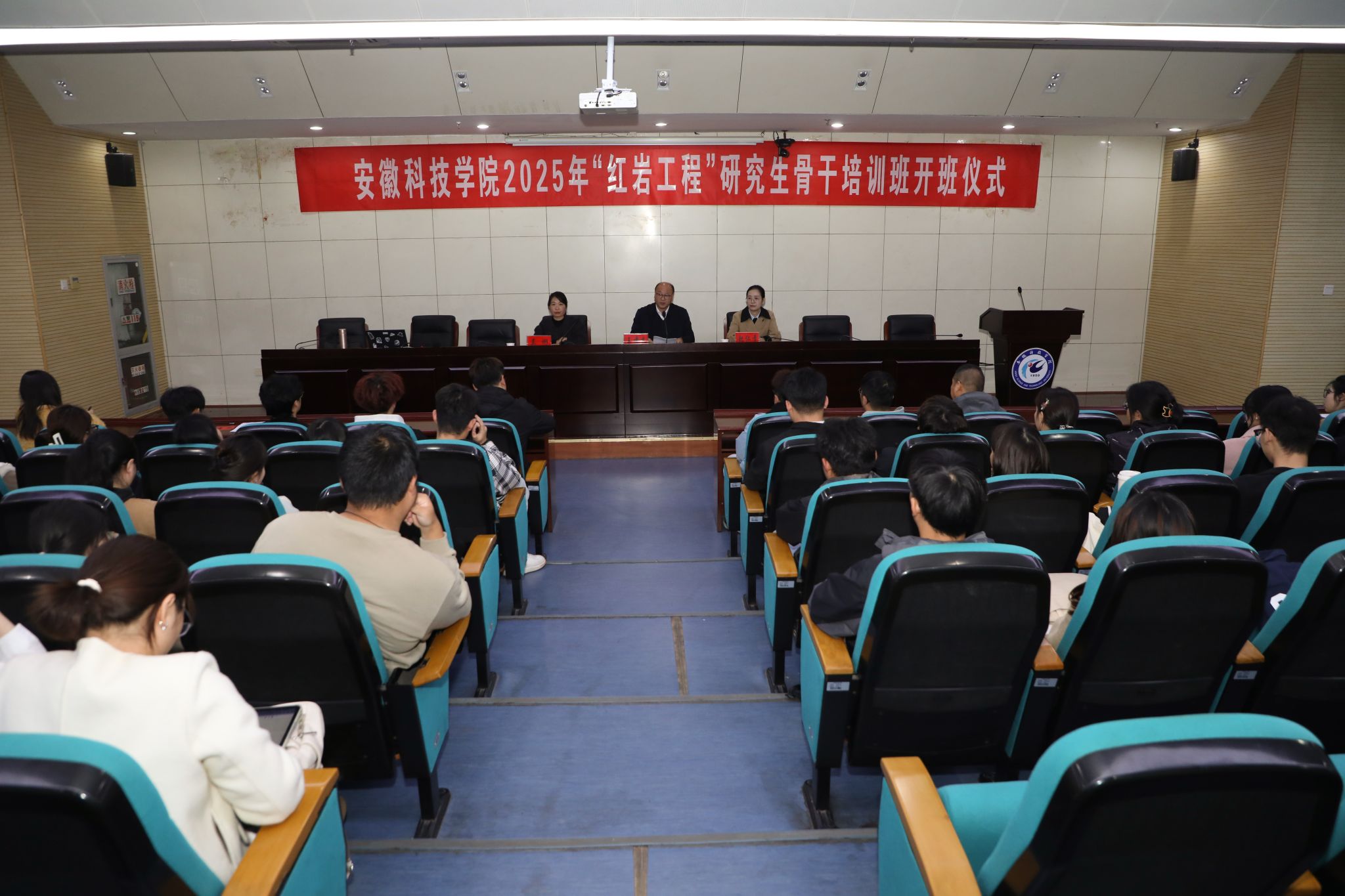 10月29日下午,学校在凤阳校区会议中心一楼报告厅举行2025年“红岩工程”研究生骨干培训班开班仪式,龙湖校区、滁州校区设分会场同步线上参加。校党委委员、副院长王孝义,马克思主义学院教师赵仁青出席仪式。研究生处相关教师以及150余名研究生骨干共同参加了开班仪式。
