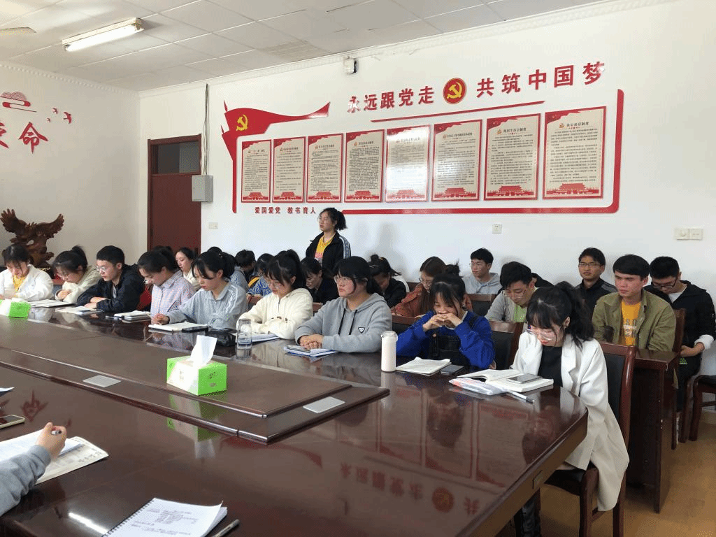 4月29日下午,资源与环境学院于东办公楼学院会议室举行“推优入党”答辩会。学院党委副书记沈树周,学生党支部书记吴国良、杨小晗、王丽萍出席本次会议,29名入党积极分子“推优”考察对象参加,会议由党政办主任吴国良主持。