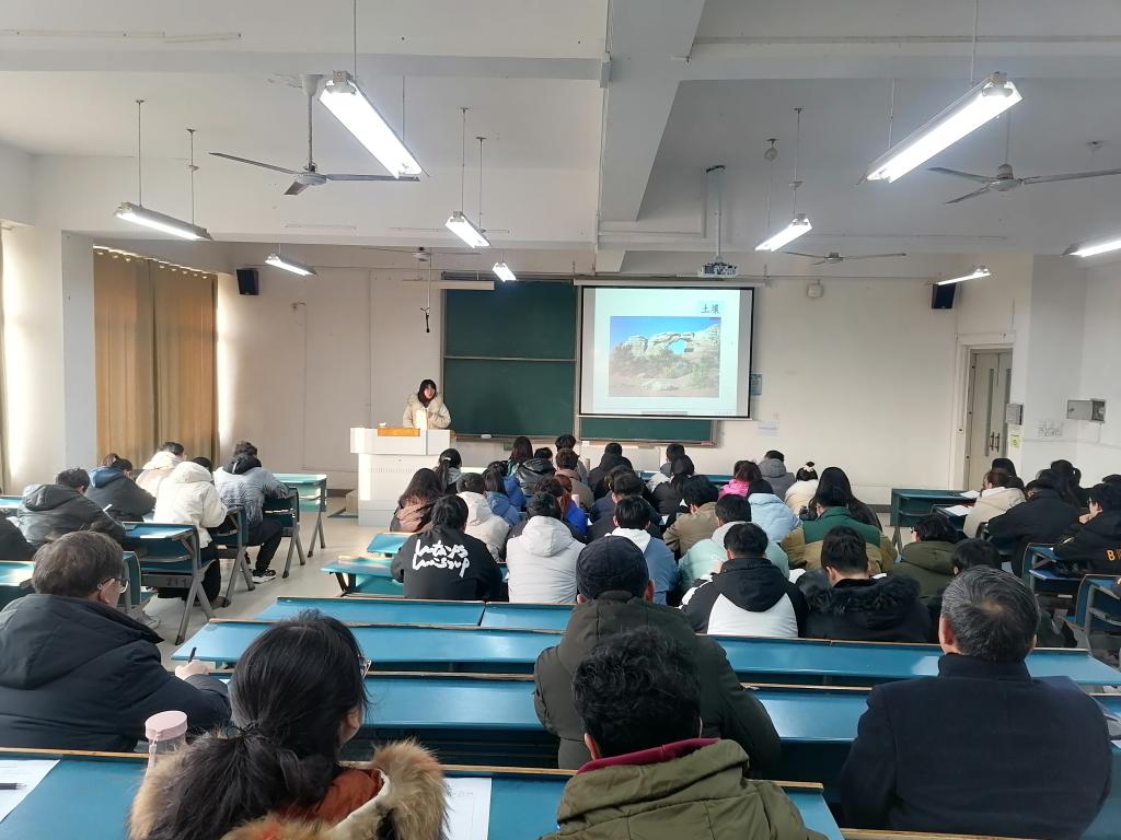 裴文霞老师在课前的课件制作及教学策略上都做了精心的准备。课上通过“火成论”和“水成论”的讲解,充分地将思政元素润物无声地融入到专业知识的传授中,使学生意识到科学研究是一个“大胆假设,小心求证”的过程,引导学生树立科学严谨、全面看待问题的科研态度,有效地将德育教育和专业教育融合。课后,学院领导和老师对本次教学示范公开课提出了宝贵的意见和建议。(特约通讯员:田文 审核:沈树周 摄影:邹海明)