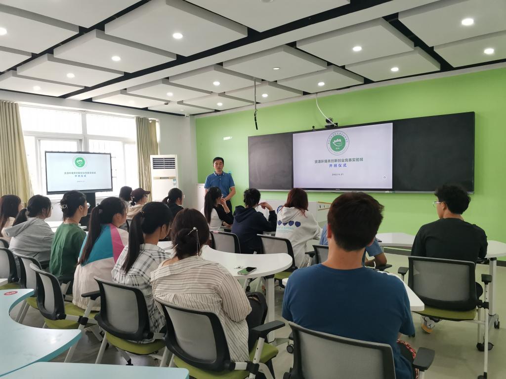 邹海明首先对第一届资源环境类创新创业竞赛实验班的成立表示祝贺,简要介绍了竞赛实验班成立的目的和重要意义:引导学生积极参与学科竞赛,以赛促教、以赛促学、以赛促创,充分发挥创新创业教育在人才培养中的实践引领作用,不断提升大学生的创新精神、创业意识和创新创业能力。此外,他强调:一要珍惜竞赛实验班的学习机会、认真参加培训、遵守学习纪律;二要结合专业知识勤于思考、培养兴趣、敢于创新;三要充分发挥自身的积极性、主动性和创造性,着力提升解决实际问题的能力。