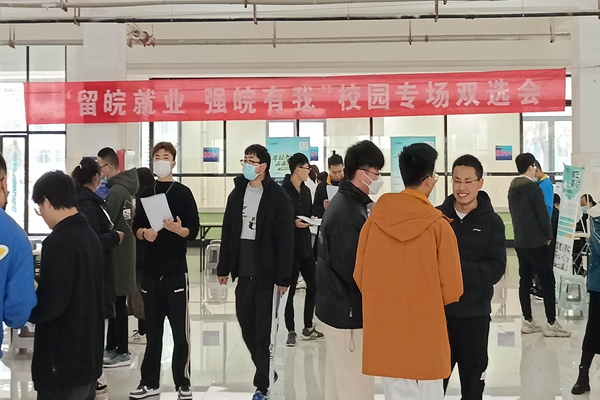 12月15日下午,“留皖就业,强皖有我”校园专场双选会按既定计划举行。为强化就业服务,专场双选会在两校区同步开办。