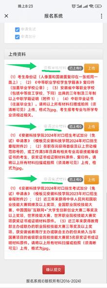 第五步:选择“上传材料”板块,按照要求,上传资格审核材料,无误后,点击确认提交按钮,一旦提交,不可更改。