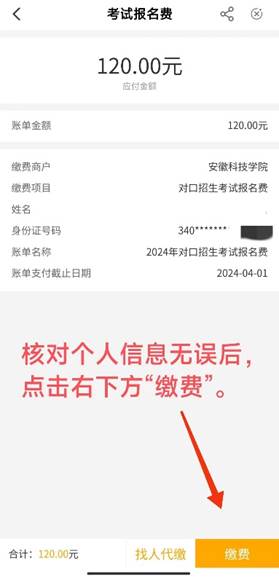 符合报考条件的,缴费成功的考生,学校将在招生信息网“通知公告”栏予以公布,请注意查对,如有问题请于4212:00前反馈(咨询电话:0550-67320410552-3197041)。对不按时缴纳考试报名费的考生,学校不安排考试。考生因故不参加专业理论考试和专业技能测试的,不退还报名费。